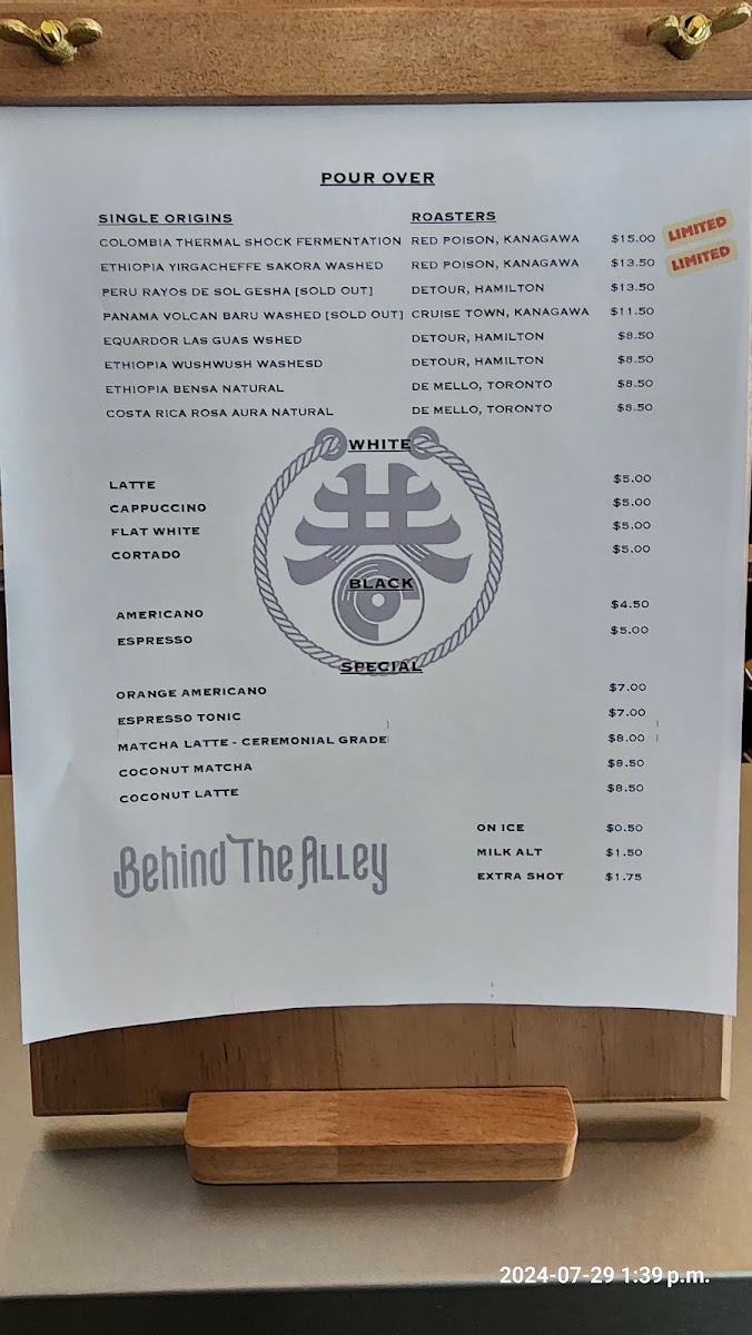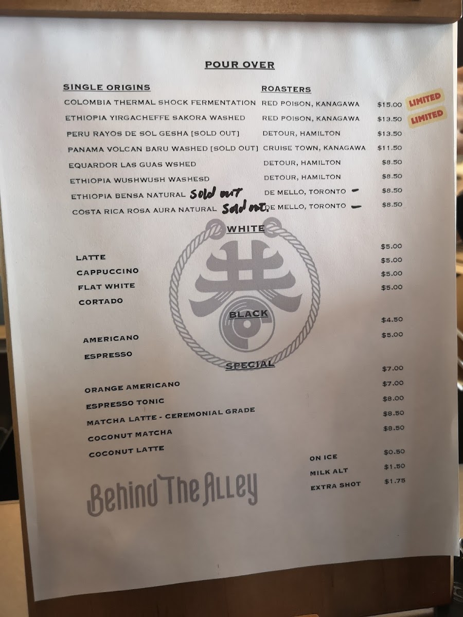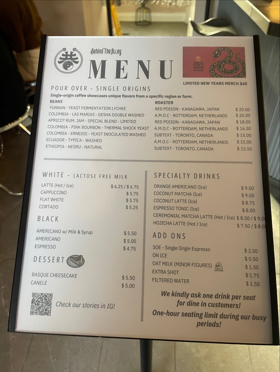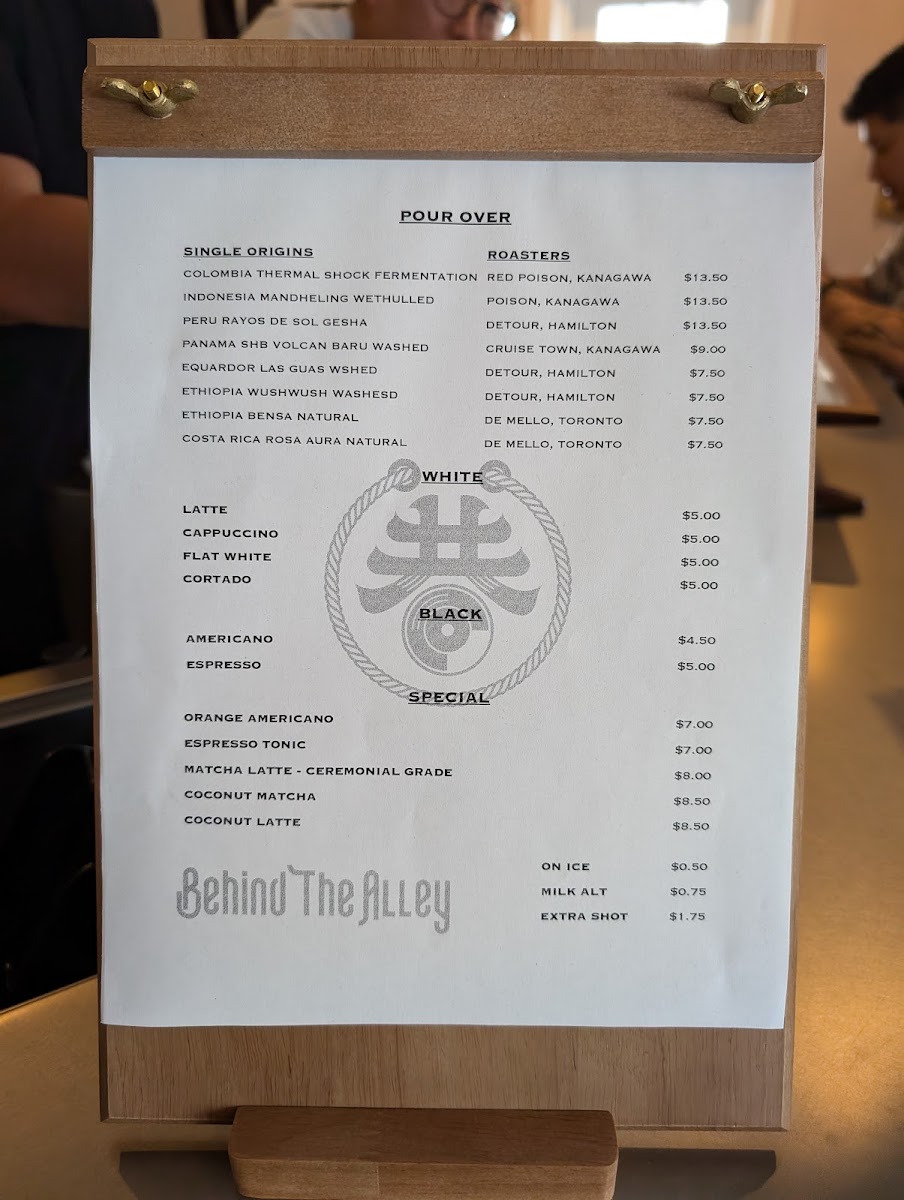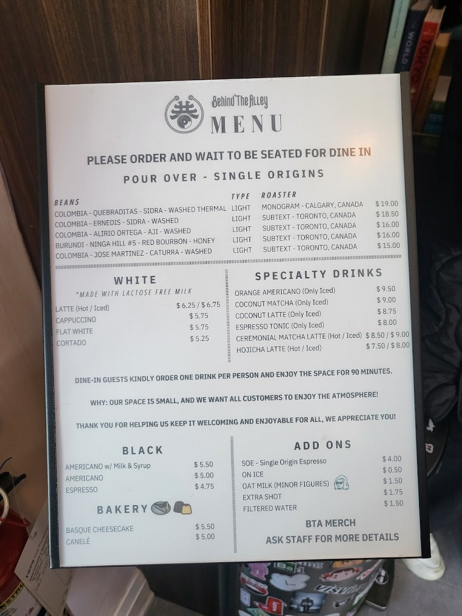 The menu at Behind The Alley reflects the simple elegance of a thoughtfully curated coffee shop, focusing on carefully prepared beverages that invite you to slow down and savor the moment. You’ll find a selection of classic espresso-based drinks alongside unique single-origin pour overs that highlight the nuanced flavors of their rotating coffee beans.